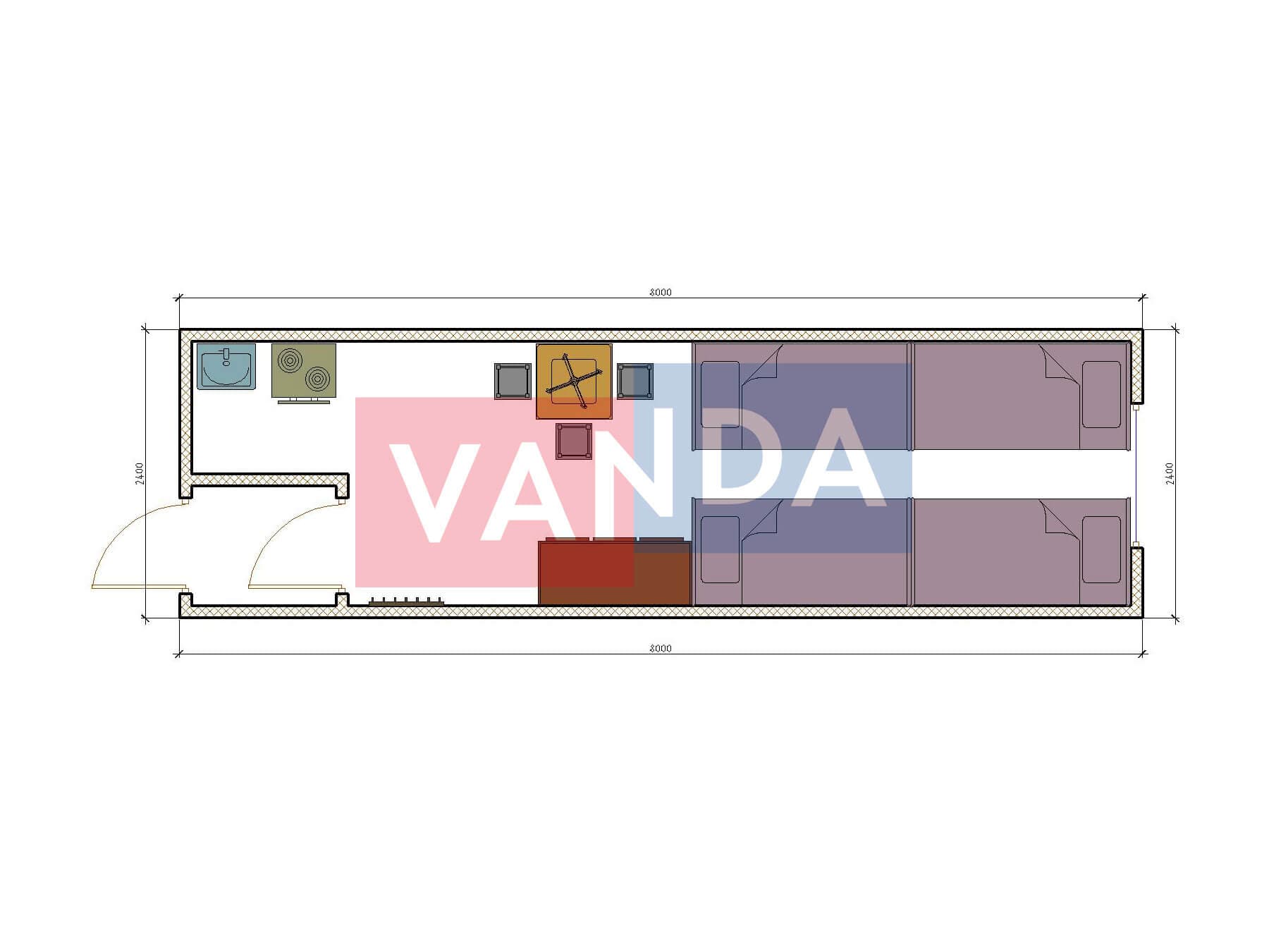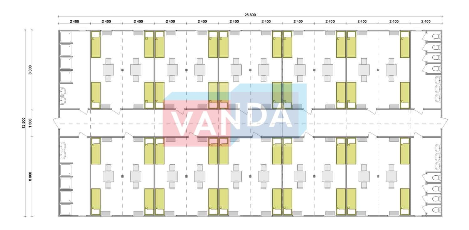 Проект вахтового посёлка 14.0х57,6 14x57.6 806.4 OSB 9 мм. Оцинкованный профлист 20 700 000 р. Уточняйте у менеджера
