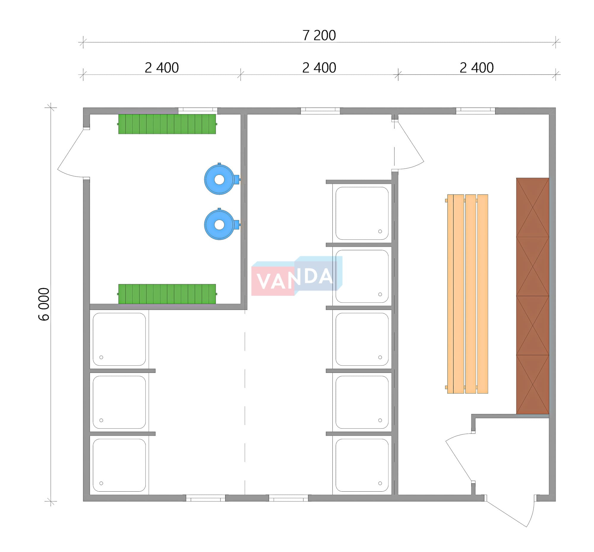 Модульная бытовка с плоской крышей 7.2x6.0 7.2x6.0 43.2 OSB 9 мм. Оцинкованный профлист 675 000 р. Уточняйте у менеджера